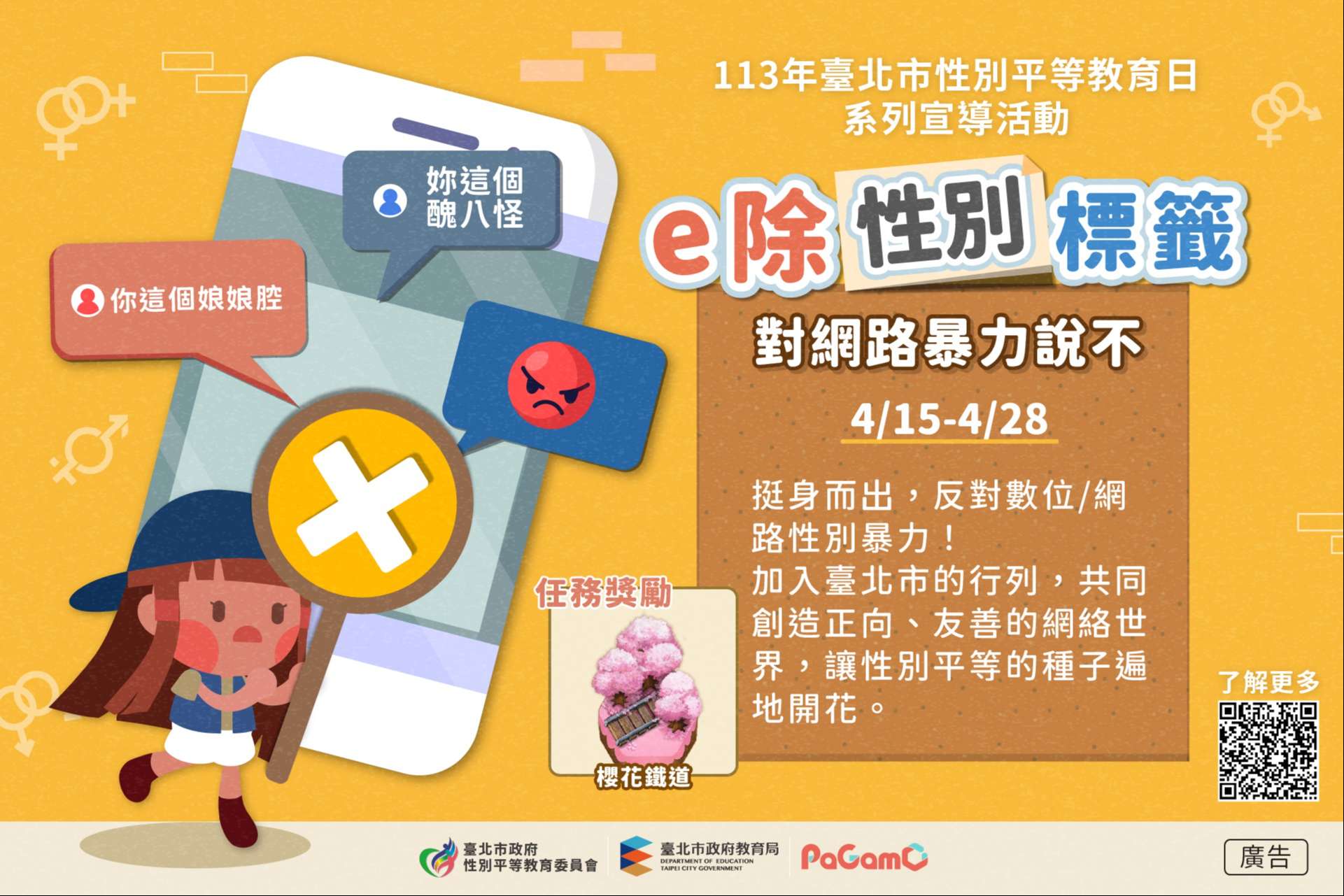 主旨:響應113年度性別平等教育日活動,鼓勵全校學生參與性別平等教育日宣導活動:登入PaGamO網站,玩遊戲學性平。