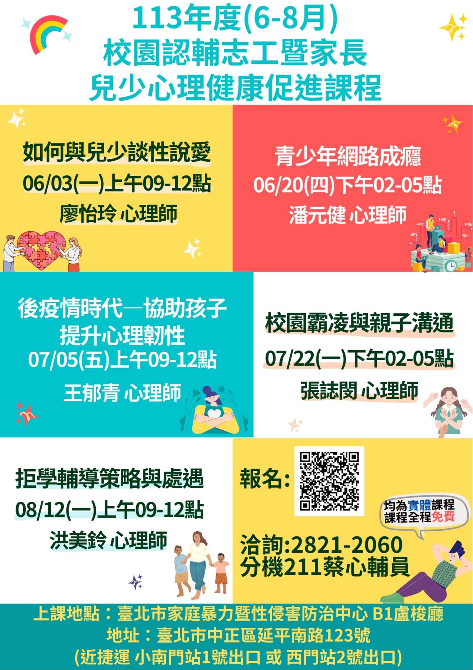 113年度校園認輔志工暨親職教育系列-兒少心理健康促進課程(6月至8月)