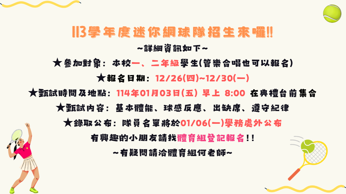 ★錄取公布:隊員名單將於01/06(一)學務處外公布